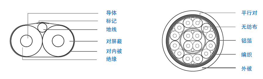 | 地線(xiàn):30 AWG 單根鍍錫銅線(xiàn), 外徑0.26 mm | 外屏蔽:36 AWG 鍍錫導體,重疊率 80% |